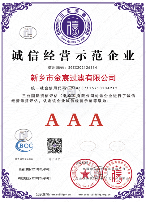 新鄉(xiāng)金宸過濾三A誠信經(jīng)營