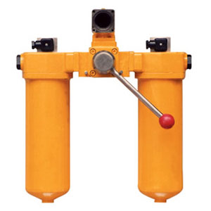 雙筒回油過濾器是由兩只單筒過濾器及二位六通換向閥組成, 結(jié)構(gòu)簡單,使用方便,并帶有旁通閥及濾芯污染堵塞發(fā)訊器,以達(dá)到保證系統(tǒng)安全的目的。單筒過濾器在工作過程中,濾芯堵塞到一定程度需清洗或更換濾芯時,要停止主機(jī)工作,這樣不僅浪費(fèi)時間更不能滿足主機(jī)連續(xù)工作的需要,雙筒過濾器有效地解決了單筒過濾器這方面的缺陷,在不停機(jī)的情況下可清洗或更換濾芯來保證主機(jī)正常的連續(xù)工作。